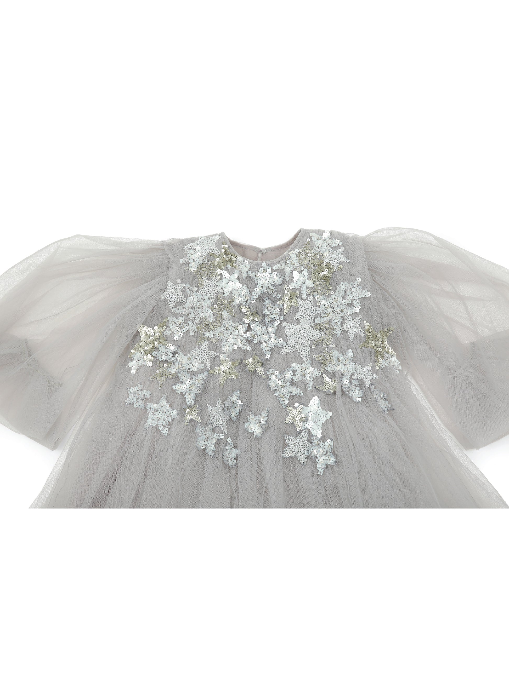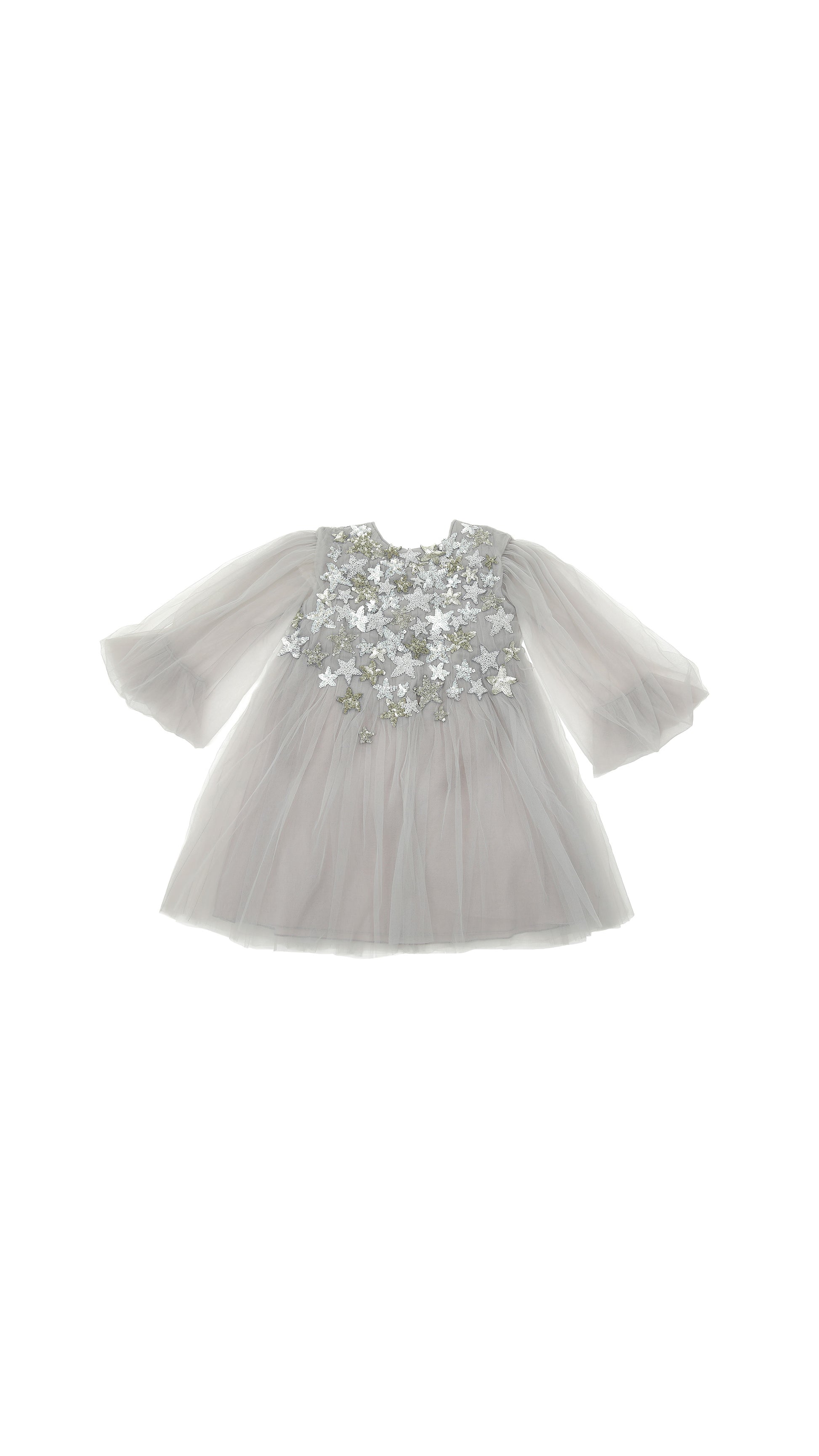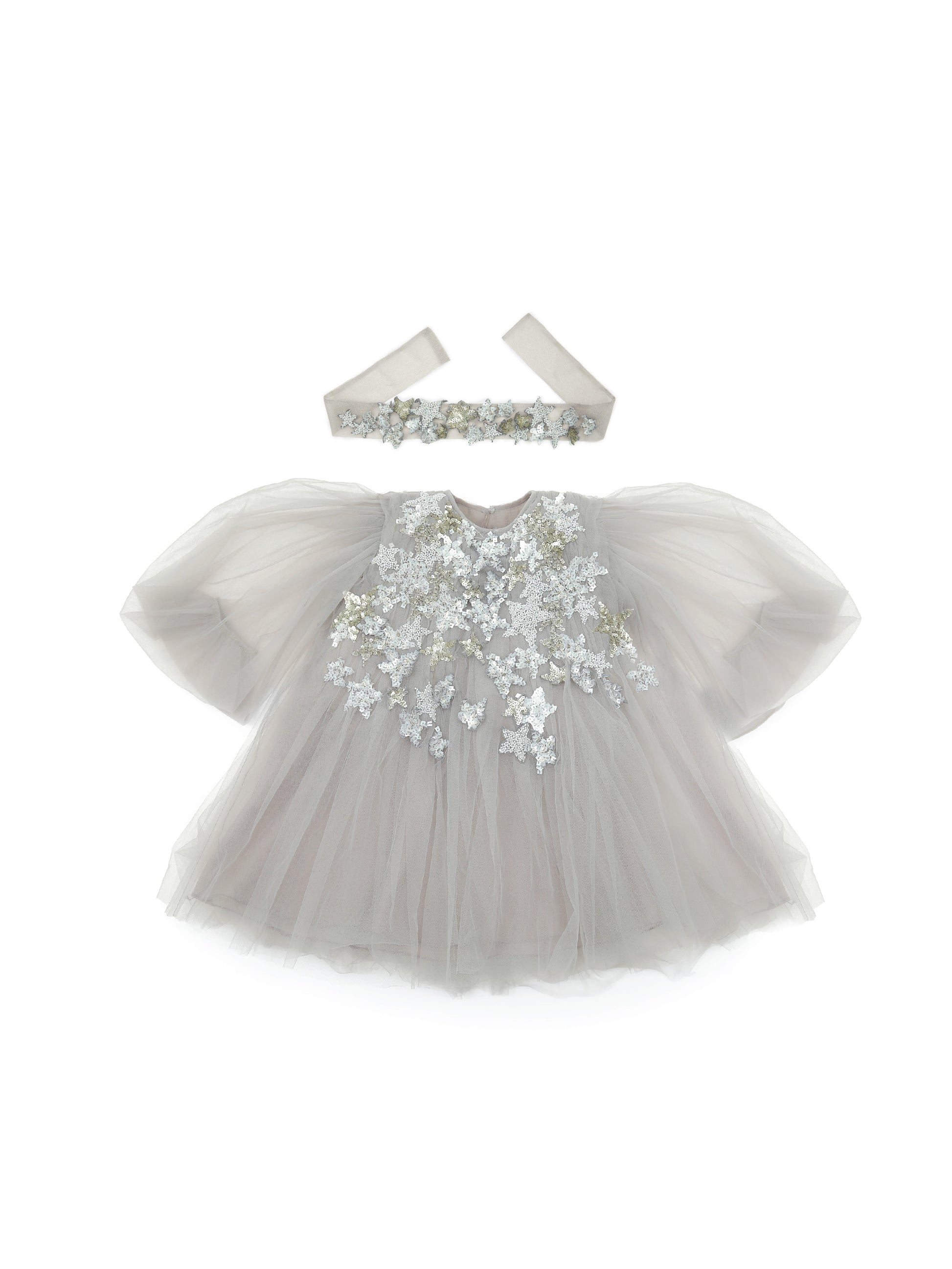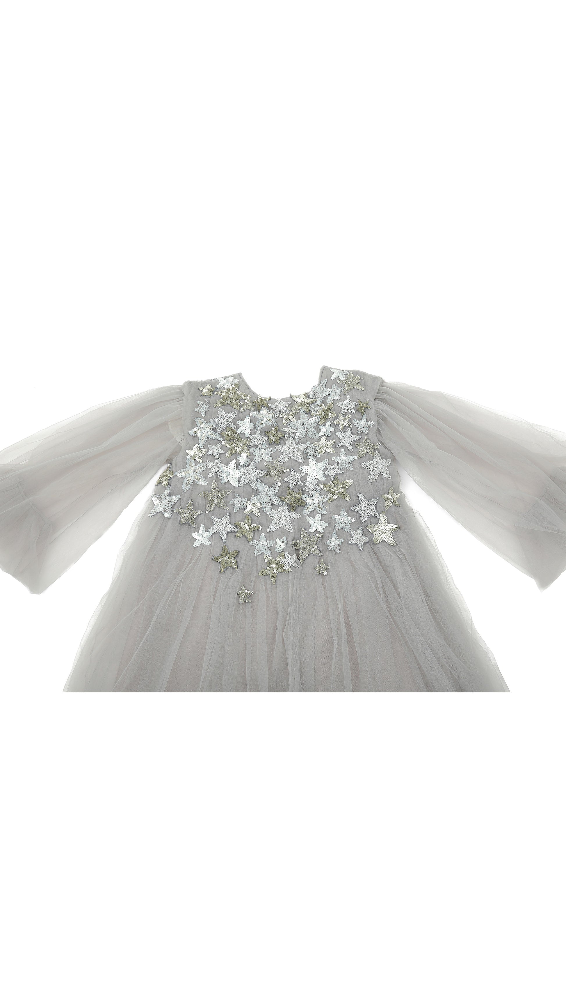 Introducing our Enchanting Stars Appliqué Tulle Dress, complete with a Matching Headband. This magical ensemble features layers of luxurious tulle, adorned with intricate star appliqués, creating a look that's nothing short of celestial.